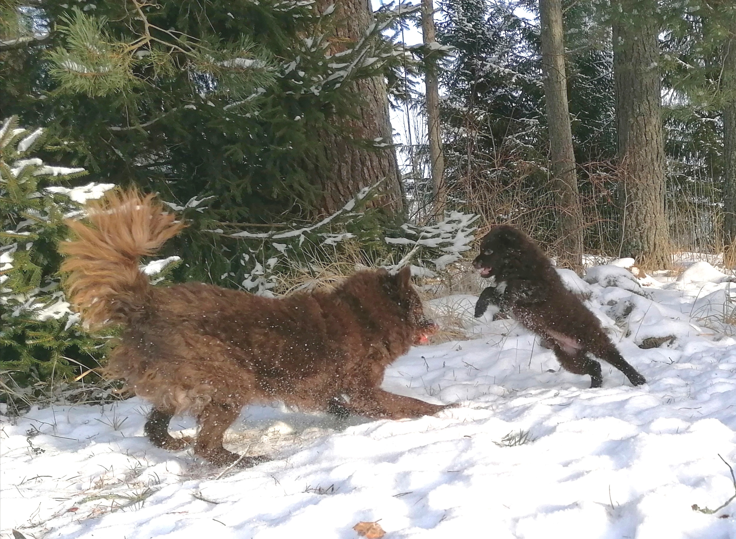 Prasu voi paksusti, sen silmät aukesivat tällä viikolla ja nyt se harjoittelee kävelemistä kovasti. Pentulaatikko alkaa käydä sille pieneksi, suureen maailmaan täytyisi pian päästä. Polkka hoivaa edelleen pentuaan hienosti, mutta malttaa jo hyvin käydä pienillä lenkeillä kotipihan ulkopuolella. Perheen muilla koirilla ei luonnollisesti ole pentulaatikolle tai edes pentuhuoneeseen asiaa, Polkka on asiassa aika järkähtämätön.