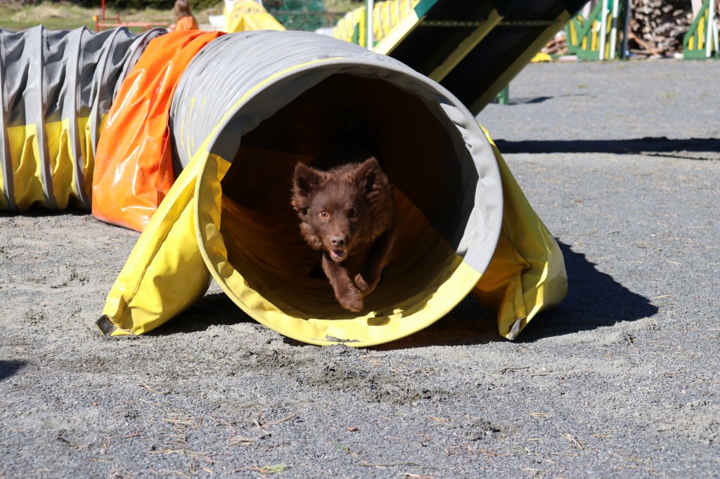 Polkka hoivaa edelleen pentuaan hienosti, mutta malttaa jo hyvin käydä pienillä lenkeillä kotipihan ulkopuolella. Perheen muilla koirilla ei luonnollisesti ole pentulaatikolle tai edes pentuhuoneeseen asiaa, Polkka on asiassa aika järkähtämätön.